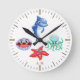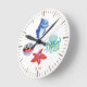 Cute Cartoon Shark Octopus Starfish Shell Monogram Round Clock