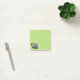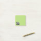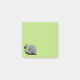 Cute snail character kids post-it notes with an ink drawing of a cartoon snail character with a smile, spiral eyes and white dots all over its body and shell over customizable light green background.