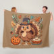 Cute Cartoon Thanksgiving turkey and pumpkin Fleece Blanket