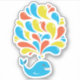 Cute whale sticker with a colorful illustration of a smiling cartoon whale splashing bright blue, yellow and orange swirls. This cute sticker is great for all the whale loving girls out there who also happen to love fun, bright colors.