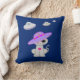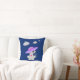 Throw pillow with cute cat and flying saucers only on the front side on royal blue color background.