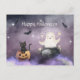 Cute Cat and Ghost Halloween Postcard