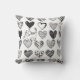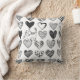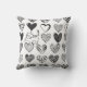 Cute Cat and Heart Black and White Pattern Throw Pillow