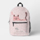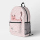 NewParkLane - Cute, personalized kids backpack, featuring a sweet sleeping pink cat cartoon, two hearts and a little grey mouse on the front pocket, with a soft blush pink background and a whimsical pattern of white polkadots, and a text template for your child's name. A great back to school gift for any young girl!