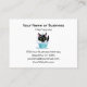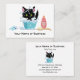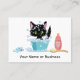 This adorable business card features a black cat in tub getting a bubble bath with a bottle of soap, brush and toy mouse. Perfect for a pet grooming business or for personal use.
