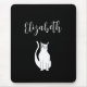 Cute Pet Cat Black mouse pad, with a hand drawn winking kitty design and customizable script typography. A fun addition to your electronics accessories.