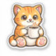 Cute Cat Coffee – Cozy Orange Cat Drinking Coffee Sticker