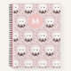 Cute Cat Face Pink Dotty Pattern Monogram Notebook