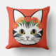 Cute Cat Face Vibrant Illustration Throw Pillow
