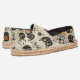 These fun espadrilles have a pattern of cute cartoon cat faces in black and white. You may change the interior lining to any of the choices you prefer. *Thanks to Soul Cliparts World for the images in this design.