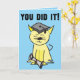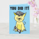 Cat lover graduation card features illustration of a yellow kitty cat wearing a graduation cap and holding a graduation diploma, front of card reads - You Did It! Easy to personalize your message on the inside of the card.