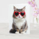 Designed with a fluffy long-haired tabby cat sitting right in the center, this card keeps the focus on a sweet, confident little star. The cat has a big white chest, soft brown-and-black stripes, and long white whiskers that stand out against a plain white background. Heart-shaped sunglasses in bright red sit on its face, giving it a funny, cool look that still feels loving 💘. You can still see the cat’s small pink nose below the glasses, and its ears have little tufts that add to its extra-fluffy look. The lighting is soft and even, like a simple studio photo, so the fur details and the red glasses are easy to notice. There isn’t any text shown on the front in this image, so the cat and the heart glasses do all the talking ❤️. It’s a fun choice for a partner, friend, or anyone who’d smile at a cute cat in love-themed shades 😘.