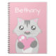 Personalised girl's notebook with a cute kitty holding a pink heart and background color you can customise.