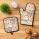 Cute Cat Home Patchwork Cozy Pastel Custom Name Oven Mitt & Pot Holder Set
