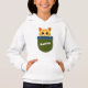 An adorable orange cat named Kenzo with big eyes peeks out from a green pocket with blue stitching. This playful design combines cuteness with a personalized touch.