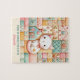 Cute patchwork / quilt style jigsaw puzzle featuring a cute cat and house in a lovely vintage style and pastel colors. Comes with a cardboard carry-case with puzzle image printed on lid! Easily personalize the text - Kate Eden Art
