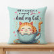 Cute Cat in Teacup Kawaii Cozy Art Throw Pillow