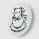 Add charm and personality to your space with this adorable cat in a teacup wall clock. Featuring a sweet, hand-drawn style kitten nestled inside a cozy cup, this black-and-white illustration blends playful whimsy with clean minimalist design.