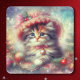 Cute Cat in Vintage Christmas Hat Square Sticker