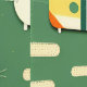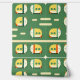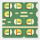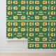 Playful illustration of cat-shaped train cars on a green background. The whimsical design combines cats and train elements in yellow, white, and orange, creating a fun and quirky vibe. Perfect for lovers of unique and imaginative art with a cute, modern aesthetic.