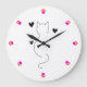Cute cat line drawing, with three hearts large clock