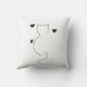 Cute cat line drawing, with three hearts throw pillow