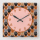 Cute Cat Lover Feline Kittens Pattern Square Wall Clock