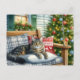 Cute Cat Lying by Christmas Tree Holiday Postcard