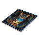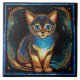 Detailed mosaic of a cute brown and blue cat in a frame with blue eyes, and blue and blue-green accents.