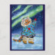 Cute cat, northern lights postcard