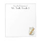 Imagine surprising your favorite teacher with this simple but fun notepad or buying it for yourself. Design features the text "From the Classroom of Mr. Smith, Grade 5" along the top (which is customizable) and an illustration of a cute cat holding a pencil on the bottom right of notepad. Fun item to add to the classroom!