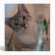 Beautiful blue eyed cat looking alert at the camera.