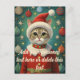 Vintage nostalgia postard for christmas with a cat wearing santa claus outfit. Personalize this Holiday Card by adding your own text easily on the sales page template.