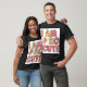 A charming and playful t-shirt design featuring an adorable cat character. The cat, with large expressive eyes and a mischievous smile, is depicted in a whimsical, cartoon-like style. It may be shown lounging, playing with a ball of yarn, or giving a friendly paw wave. Soft pastel colors or bold black outlines add a fun contrast to the design, making it perfect for cat lovers or anyone who enjoys cute and quirky fashion.