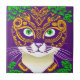 Cute Cat Wearing a Mardi Gras Mask Ceramic Tile
