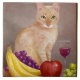 Cute Cat Wine Grapes Apple Bananas Creationarts Ceramic Tile