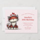 Birthday invitation with a whimsical drawing featuring a big orange red kitty cat.