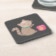 Cute cat with teacup cartoon beverage coaster