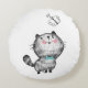 This whimsical round throw pillow is cute as can be and is an ideal decor item for a little girl's room that is smitten with kittens! Each side of this round white pillow has an illustration of a cute gray and white kitten or cat on it, playing with an illustrated black butterfly.