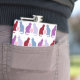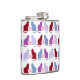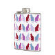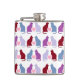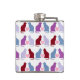 Cute cat silhouette pattern in purple and blues with pink hearts in-between. Hip flask.