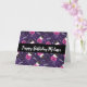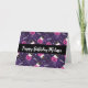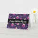 Birthday card with an adorable Halloween themed pattern. Cats in witches hats, sitting on pink pumpkins with purple cobwebs in the background.