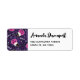 Return address labels with an adorable Halloween themed pattern. Cats in witches hats, sitting on pink pumpkins with purple cobwebs in the background.