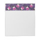 A notepad with an adorable Halloween themed pattern. Cats in witches hats, sitting on pink pumpkins with purple cobwebs in the background.