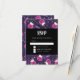 RSVP card with an adorable Halloween themed pattern. Cats in witches hats, sitting on pink pumpkins with purple cobwebs in the background.
