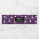 Water bottle labels with an adorable Halloween themed pattern. Cats in witches hats, sitting on pink pumpkins with purple cobwebs in the background.