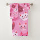 Cute Cats Cat Face Pattern Pink Bath Towel Set