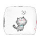 This adorably cute pouf would look perfect in a little girl's room or nursery. It has gray illustrated cat or kitten images on four sides with the top panel saying "I love you to the moon and back" in black modern text. There are also some pink hearts and a pattern of paw prints on the bottom panel.