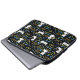 The sleeve is made of nice feeling material and seems very durable. I'm not sure how easy it'll be to clean, but the construction seems sound and the fabric is quick thick. I also like the double zipper. The printing is lovely and appears durable. The white on black contrast is nice, and the design very elegant.