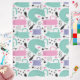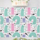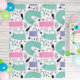 On a white background, there are adorable abstract cats with paw prints and fish bones.