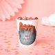 Adorable a baby is brewing Halloween gender neutral baby shower paper cups with an illustration of a witch cauldron with a bubbling orange potion. Illustrated and designed by Patricia Alvarez.